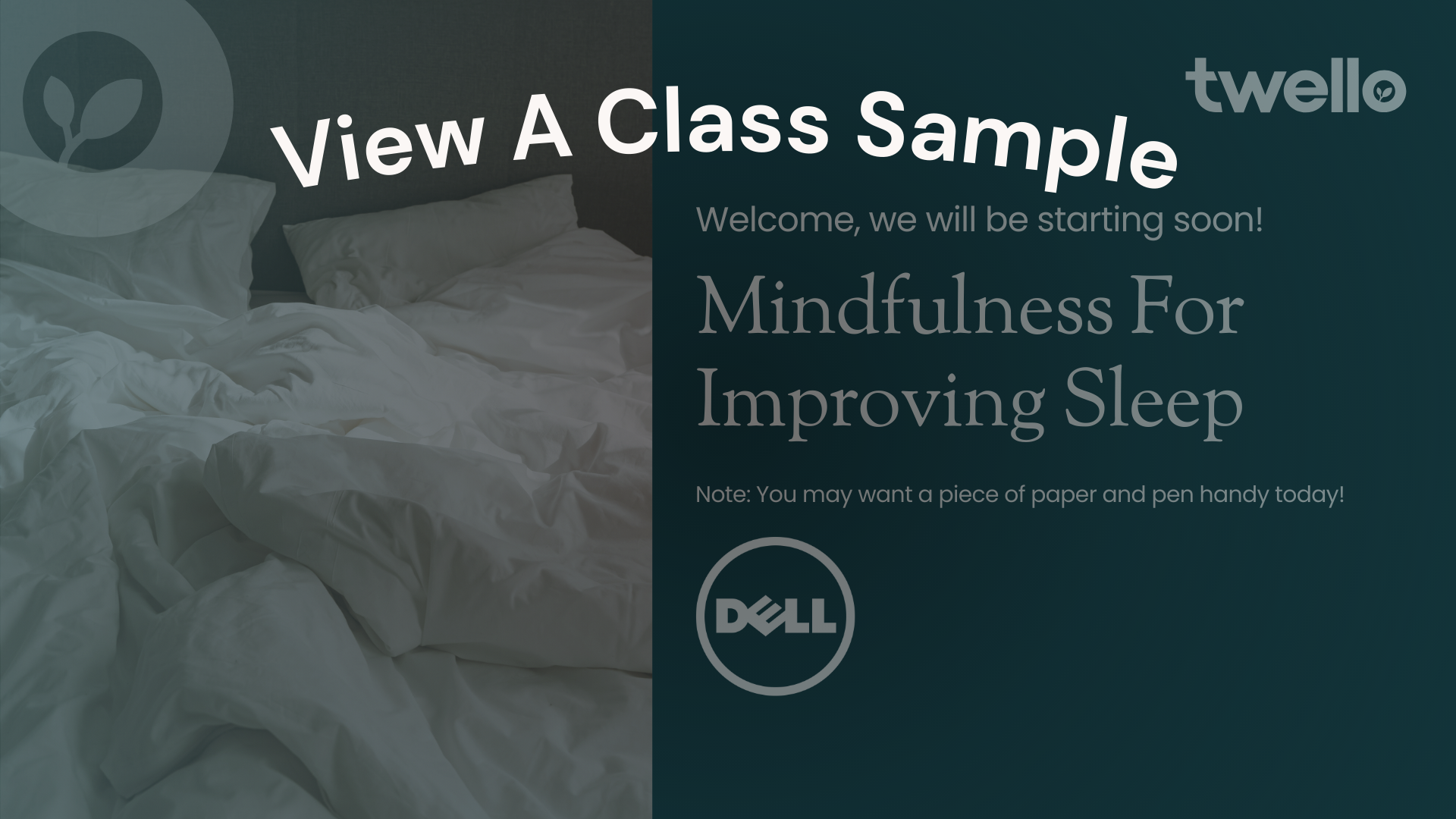 Summary: Mindfulness for Improving Sleep is a 30-minute workplace wellness class created by Twello to help employees calm busy minds, build healthier nighttime habits, and use mindfulness tools to fall asleep faster and wake up more refreshed.
