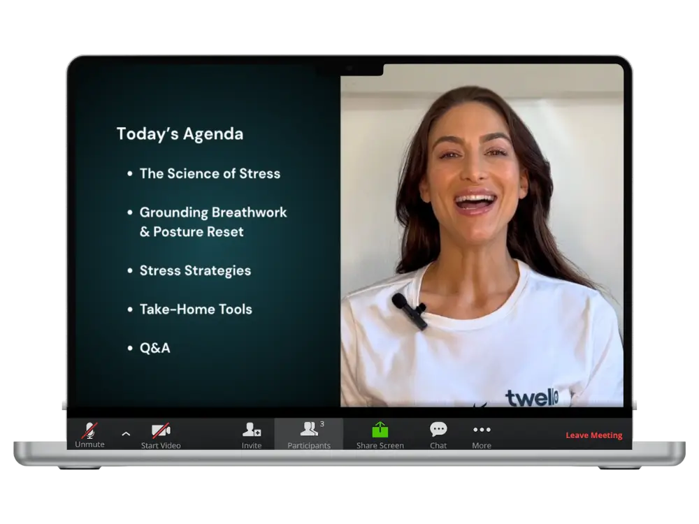 "Twello's session was very organized, relaxing and informative. Staff felt energetic after the session and everyone learned how to relax and take a breath the proper way." — Nasrat Barekzay, RBC